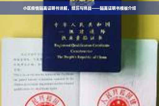 摘要:本文将详细介绍小区疫情隔离证明书的重要性及其模板设计,同时探讨居民在疫情期间面临的隔离经历与挑战。通过本文,读者可以了解如何有效应对隔离措施,保障自身及社区安全。文章字数控制在约百字至二百字之间。