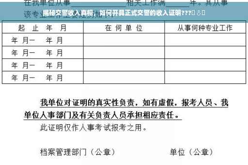 摘要:本文将探讨交警的收入真相,介绍如何获取正式交警的收入证明。交警作为公务员,其收入受到国家政策和地区差异的影响。本文将简要介绍交警的收入状况,并探讨如何开具正式交警的收入证明,帮助公众了解交警的收入情况。