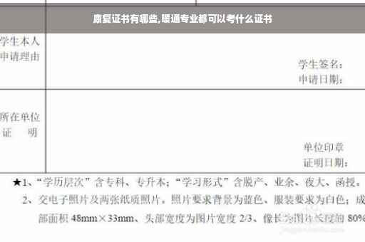 康复证书有职业康复师证书、康复技能证书、康复援助证书、康复护工证书等。