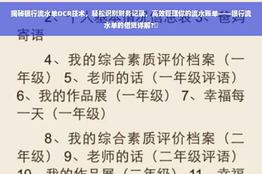 摘要:,,本文将揭秘银行流水单OCR技术的运用,解析如何通过OCR技术轻松识别银行流水单并高效管理个人财务记录。文章还将解释银行流水单中借贷标识的含义,帮助读者更好地理解并应用银行流水单,实现财务记录的清晰与便捷。