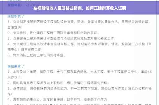 摘要:本文将详细介绍车祸赔偿收入证明的格式和写法。文章将涵盖如何撰写证明,包括必要的信息,如个人基本信息、事故详情、收入损失情况等。阅读本文,您将了解如何准备一份完整、准确的车祸赔偿收入证明,以便顺利获得相应的赔偿。