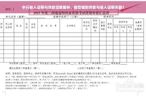 摘要:本文深度解析了中国银行收入证明与贷款之间的关系,探讨了中行收入证明在贷款申请过程中的作用,以及能否通过贷款查询到收入证明的情况。文章详细解读了收入证明的重要性,并介绍了其在贷款申请过程中的具体作用,同时分析了银行是否能通过贷款查证收入证明的真实性。