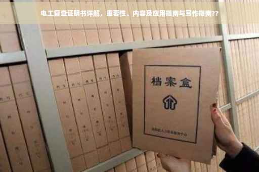 电工复查证明书是电工行业中的一个重要文件,它是对电工专业技能和资格的一种官方认可,随着电气行业的迅速发展,电工复查证明书的作用日益凸显,本文将详细介绍电工复查证明书的重要性、内容及应用指南,帮助读者更好地了解和使用这一证明文件。