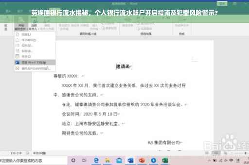 在当今社会,随着金融行业的快速发展,越来越多的人开始注重个人财务管理,开设个人银行流水账户是其中的一项重要步骤,对于个人理财规划、贷款申请等方面都有着重要的作用,本文将详细介绍劳埃德银行开设流水账户的过程和注意事项,帮助大家轻松开启个人银行流水账户。