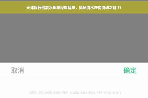 天津银行出现的“倒流水”现象引起了广泛关注,所谓“倒流水”,指的是银行在特定情况下出现的存款流出异常现象,本文将详细探讨天津银行这一现象的成因、影响及应对措施,以期为相关人士提供有价值的参考。