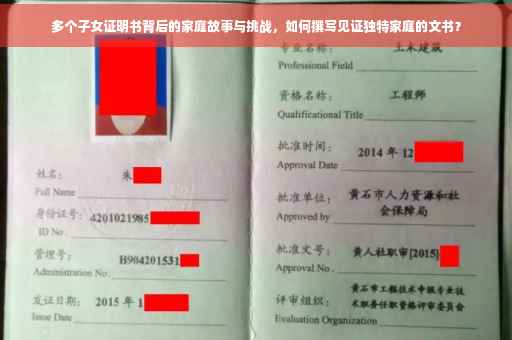 摘要:本文将探讨多个子女证明书的撰写方式,同时揭示家庭背后的故事和所面临的独特挑战。通过详细介绍每个子女的个人信息、家庭状况以及他们共同面对的问题,多个子女证明书不仅能够证明家庭成员的关系,还能展现家庭在面对多重压力时的坚韧与努力。本文将提供撰写此类证明书的实用建议,以帮助家庭更好地应对各种挑战。