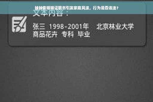 摘要:一场家庭风波背后,妹妹偷取姐姐的证明书引发争议。这种行为是否违法需视具体情况而定。本文将探讨这一事件的来龙去脉,分析相关法律责任,并提醒读者注意家庭内部沟通和处理问题的正确方式。
