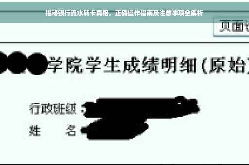 摘要:本文揭示了银行流水转卡的真相,介绍了正确操作方法及注意事项。通过银行流水转卡,可以实现资金的有效利用和理财目的。操作时需注意选择正规渠道、核对信息真实性、了解相关手续和费用等,以避免不必要的风险和损失。正确操作银行流水转卡,有助于实现个人财务的增值和理财规划。