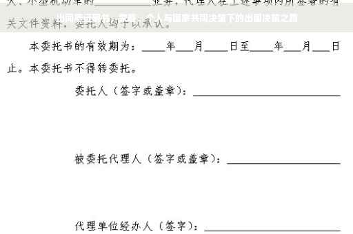 出国的同意证明书不仅是个人和家庭的决策,也是国家与个人的桥梁,国家在保障公民自由权利的同时,也需要维护国家的安全和利益,出国的同意证明书是国家在保障国家安全、维护社会秩序方面的重要手段,通过这份证明书,国家可以更好地了解公民的需求和意愿,为公民提供更好的服务和支持,公民也需要遵守国家的法律法规,确保自己的出国行为符合国家的要求和期望。