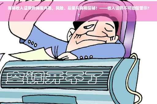 摘要:收入证明的真假内幕关乎个人诚信与社会风险。本文将揭示收入证明造假的后果与风险,包括法律后果、信用损失及职业影响等。提醒广大读者,收入证明不可造假,维护个人诚信是社会责任,也是个人发展的基石。请务必遵守法律法规,避免陷入造假的误区。