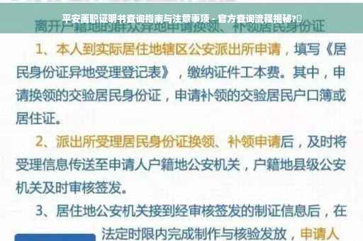 平安离职证明书查询是离职后的重要手续之一,本文详细介绍了查询流程以及注意事项,希望广大读者能够顺利完成查询手续,获得真实的离职证明书,在查询过程中,如有任何疑问或遇到问题,可及时与原公司或相关部门沟通,寻求帮助与指导,祝愿广大读者在未来的职业道路上一切顺利!