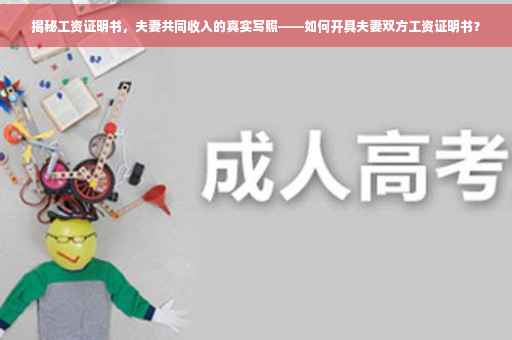 摘要:工资证明书是展示夫妻双方收入的重要文件,揭示了共同收入的真实情况。开具工资证明书需要遵循一定程序,包括提供必要信息、正确格式和单位盖章等。了解工资证明书的制作方法和使用场景,有助于夫妻双方更好地管理家庭财务,确保经济稳定和未来发展。本文为您详细解析工资证明书的开具过程,让您轻松掌握夫妻共同收入的真实写照。