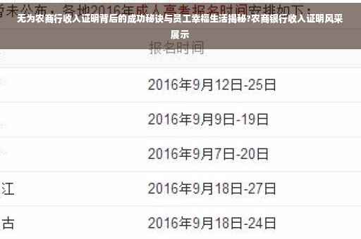 在当今社会,银行业作为经济发展的重要支柱之一,承担着为实体经济提供金融服务的重要任务,无为农商行作为其中的一员,凭借其卓越的服务和创新能力,逐渐赢得了广大客户的信赖和好评,本文将带您走进无为农商行,深入了解其收入证明背后的故事,揭示一个优秀企业的成功秘诀与员工的幸福生活。