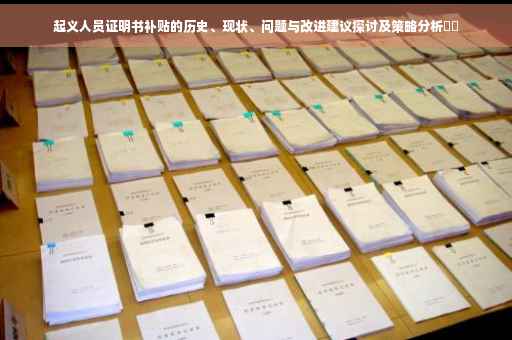 起义人员证明书补贴是我国为参与过革命起义的人员提供的一种特殊福利待遇,此政策的初衷是为了表彰和鼓励在革命起义中作出贡献的人员,并为他们提供一定程度上的生活保障,随着时代的变迁,这一政策逐渐完善,但在实施过程中仍然面临一些挑战,本文将全面介绍起义人员证明书补贴的历史沿革、现状、存在的问题以及改进建议。