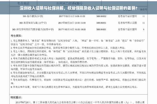 摘要:深圳收入证明与社保证明是两种不同的证明文件,对于个人权益和保障具有重要意义。收入证明主要用于证明个人在深圳的薪资收入情况,而社保证明则反映个人社保缴纳情况,包括养老保险、医疗保险、工伤保险等。了解这两者的区别,有助于个人在深圳更好地维护自身权益和保障。
