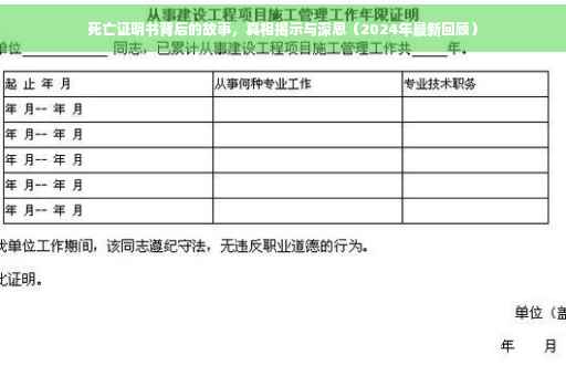 我们需要深思生命的意义和价值,每一个生命的逝去都是值得尊重和纪念的,而死亡证明书则是这一过程的见证和记录,希望通过本文的探讨,我们能更加珍视生命,关注逝者家属的情感需求,同时也为公共卫生和医学研究做出更多贡献。