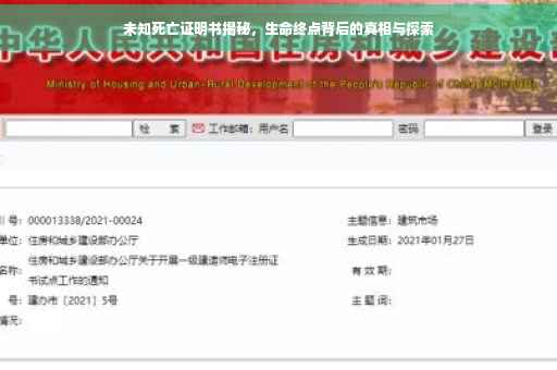 在这个充满未知的世界里,死亡一直是我们无法避免的话题,尽管科技进步和社会发展日新月异,但关于死亡,我们依然有许多未知和困惑,我们将聚焦于一个令人深思的话题——“未知死亡证明书”,这份神秘的证明书背后隐藏着怎样的秘密和真相?让我们一起探寻。