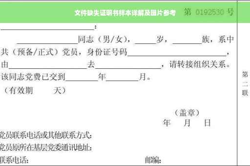 摘要:,,本文是一份文件缺失证明书样本的简介。该证明书主要用于证明某个文件确实丢失,为丢失者提供证明依据。通常包含丢失文件的基本信息、丢失时间和地点、证明人等信息。本文还附带了相关的图片样本,以便更好地理解和使用。该文件缺失证明书样本对于需要证明文件丢失的情况具有重要的实用价值。