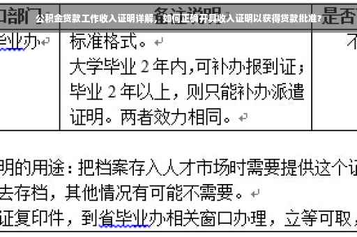 摘要:本文将详细介绍公积金贷款工作收入证明的相关内容。包括公积金贷款工作收入证明的重要性、具体开具流程、所需材料以及注意事项等。帮助读者了解如何正确开具公积金贷款工作收入证明,以便顺利申请公积金贷款。阅读本文,您将了解到关于公积金贷款工作收入证明的全面信息。