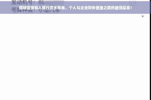 随着科技的飞速发展,我们的生活变得越来越便捷,银行流水作为个人和企业财务的重要记录,其导入方式的便捷性直接关系到我们的工作效率,本文将详细介绍直接导入银行流水的方法及其优势,帮助个人和企业更好地管理财务,实现高效便捷的工作模式。