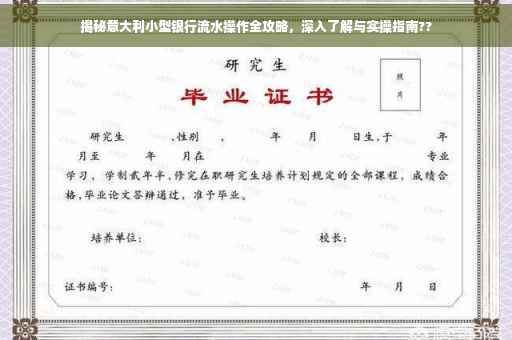 摘要:本文将揭示小型意大利银行的流水操作,提供深入了解与操作指南。通过本文,您将了解如何制作意大利银行流水,包括必要的步骤和注意事项。对于需要在意大利进行银行业务或在留学、移民过程中需要证明银行流水的人来说,本文将是宝贵的参考指南。
