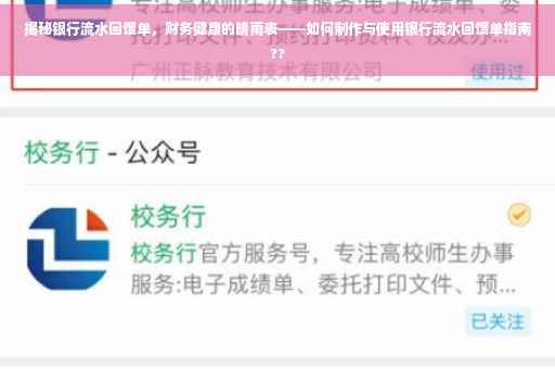 随着金融市场的日益繁荣,银行业务种类愈发丰富,其中银行流水回馈单作为个人和企业财务健康的重要参考指标,越来越受到人们的关注,本文将详细介绍银行流水回馈单的内容、作用以及如何解读这些信息,助你更好地掌握个人财务状况,合理规划财务计划。