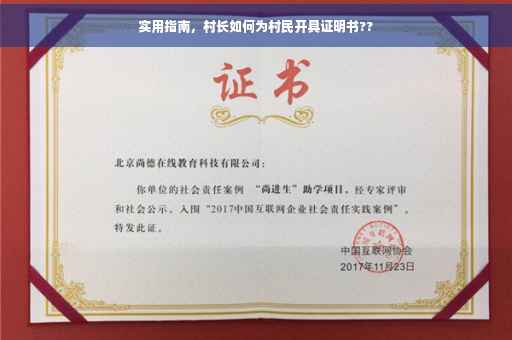 本实用指南介绍了村长为村民开具证明书的流程。作为村长,你需要了解如何根据不同情况开具不同类型的证明书,包括格式要求、内容要点等。本指南旨在帮助村长高效、准确地为村民开具证明书,确保证明书的真实性和有效性。通过遵循本指南的步骤和注意事项,村长可以顺利完成证明书的开具工作,为村民提供便利。