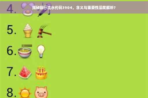 在日常生活中,我们经常会听到关于银行流水的各种信息,银行流水作为记录个人或企业银行账户交易的重要文件,其背后隐藏着许多数字代码,本文将聚焦于银行流水代码3904,深入探讨其含义及其在银行业务中的实际应用,通过本文,您将更全面地了解银行流水代码的重要性及其背后的秘密。