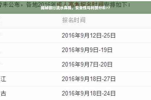 摘要:关于银行做流水,真相揭秘,其是否好且安全,需综合考虑。银行做流水有助于提升信用记录和贷款申请成功率,但也可能涉及信息安全和隐私泄露风险。选择银行做流水时,应谨慎评估自身需求和风险承受能力,确保操作合规合法,以保护个人权益。
