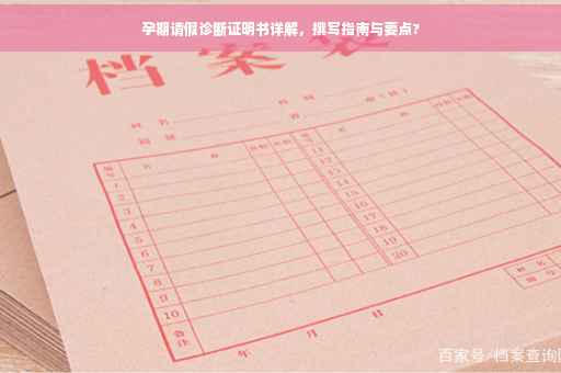 摘要:本文将详细介绍孕期请假诊断证明书的撰写过程。该证明书是孕妇在请假期间向雇主提供的医学证明文件,用以证明其确实需要休息。本文将指导孕妇如何正确填写诊断证明书,包括必要的信息,如个人基本信息、孕期情况、医生建议等。本文还将强调诊断证明书的重要性,以确保孕妇的权益得到保障。