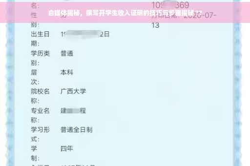 摘要:本文将介绍自媒体作者如何撰写开学生的收入证明。自媒体作者需要明确学生的收入情况,包括收入来源、收入金额和收入时间等。作者需要准备相关证明材料,如工资单、银行流水等。按照规范的格式和要求,撰写收入证明,并加盖相关公章或签字确认。开学生的收入证明需要真实、准确、合法,以确保其有效性和可信度。