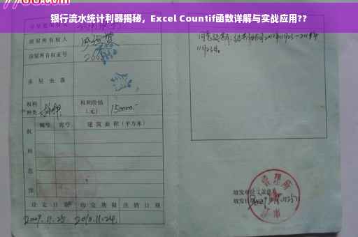 在当今数字化时代,银行业务日益繁忙,处理大量的银行流水数据成为了日常工作中不可或缺的一部分,Excel中的Countif函数作为一款强大的统计工具,能够帮助我们高效地对银行流水进行统计和分析,本文将详细介绍Countif函数的使用方法及其在银行流水处理中的应用,助您轻松应对繁琐的数据统计工作。