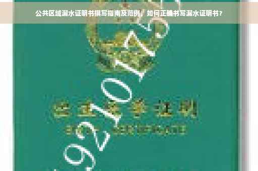 摘要:关于公共区域漏水证明书,其格式应正式且清晰。内容包括:证明书的标题、公共区域的详细描述、漏水现象的详细描述,包括时间、地点和程度,以及可能的原因和解决方案。重点强调漏水对公共区域造成的影响和需要立即采取行动的原因。字数控制在100-200字以内,简洁明了地阐述问题。