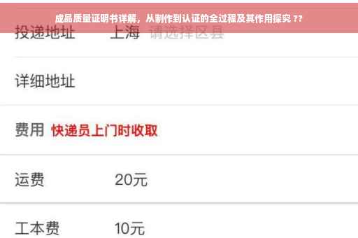 在当今社会,产品质量已成为消费者和企业关注的焦点,成品质量证明书作为证明产品质量的重要依据,对于企业的信誉和消费者的权益具有至关重要的作用,本文将详细介绍成品质量证明书的生成过程及其重要性,帮助大家更好地了解这一关键环节。