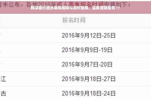 随着电子商务的迅速崛起,越来越多的人选择开设网店进行创业,在经营网店的过程中,为了评估网店的运营状况、收入情况以及信用状况,银行流水调查成为一项重要的环节,特别是在申请贷款、税务审查等方面,这一环节更是不可或缺,本文将深入探讨网店银行流水调查的相关内容,帮助读者了解真相并寻找应对之策。