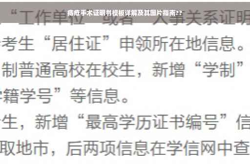 摘要:本篇文章介绍了痔疮手术证明书模板及其详细解读,包括证书格式、填写要点和注意事项等内容。文章还提供了痔疮手术证明书模板的图片,方便读者参考和使用。通过本文,读者可以了解到痔疮手术证明的开具流程和要点,以便更好地进行手术后的康复和健康管理。