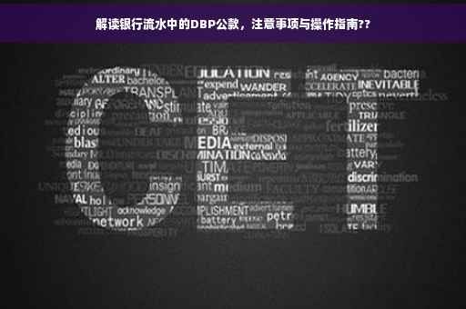 “你是否曾在银行流水账单中看到过DBP公款的标识?如何正确解读和使用这些资金?本文将为你揭示银行流水中的DBP公款,助你更好地了解这一概念。”