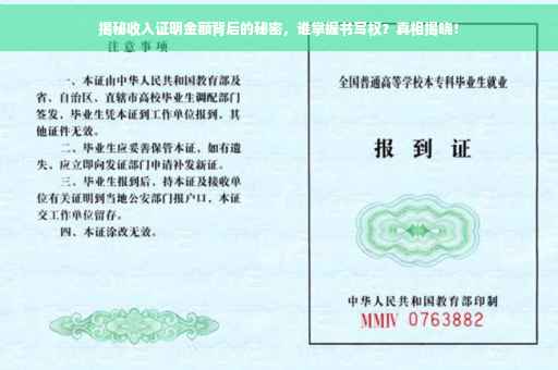 摘要:本文将揭示收入证明金额背后的秘密,探究谁才是书写者。通过深入了解,我们发现收入证明金额的书写者可能是雇主、人力资源部门或相关管理人员。本文将探讨这一过程,并提醒读者在开具收入证明时需要注意核实金额的真实性和准确性。