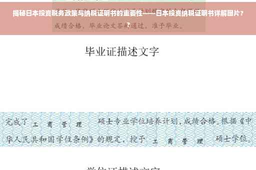 摘要:本文将介绍日本投资纳税证明书的重要性,并深入解析日本投资税务政策。通过展示日本投资纳税证明书图片,揭示其在实际应用中的价值。本文旨在帮助读者了解日本投资税务制度,以及纳税证明书在投资过程中的关键作用。