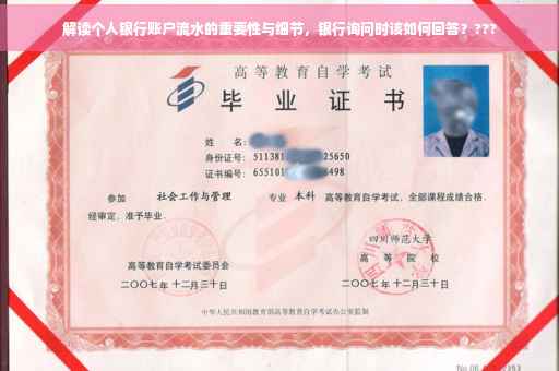 摘要:银行询问个人银行账户流水时,需理解其重要性和细节。个人银行账户流水是银行评估客户财务状况的重要依据,可反映收入、支出、转账等情况。解读流水应注意账户余额变化、交易频率、交易金额大小及来源等细节。回答问题时应如实提供相关信息,注意保护隐私。如有任何疑问,建议咨询银行工作人员。