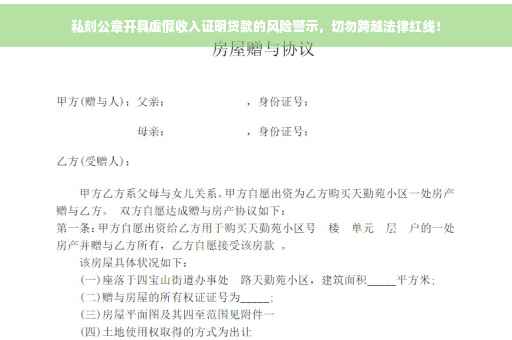 随着现代社会金融业务的便捷化,贷款成为越来越多人的选择,一些人为了顺利获得贷款,竟然选择私刻公章制作虚假收入证明,这种行为不仅严重违反法律法规,而且可能导致个人信用破产和社会秩序混乱,本文将深入探讨私刻公章开具虚假收入证明贷款的危害性,并通过实际案例进行警示,呼吁广大民众切勿触碰法律红线。