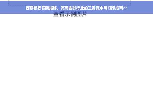 摘要:本文将揭示西藏银行工资流水的秘密,包括高原金融行业的薪酬秘密和如何打印西藏银行工资流水单。通过深入了解银行工资发放的细节,揭示金融行业在高原地区的薪酬水平及其背后的原因。提供关于如何获取和打印工资流水单的实用指南,帮助读者更好地了解自己的薪资情况。