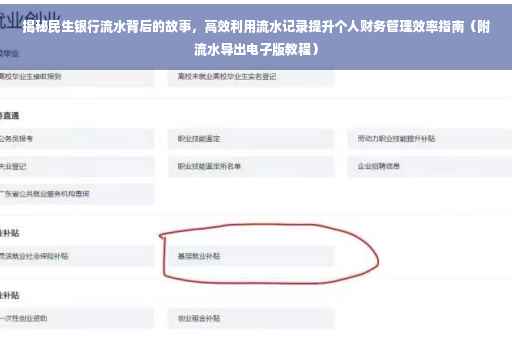 摘要:本文将为您揭秘民生银行流水背后的故事,教您如何巧妙利用流水记录提升个人财务管理效率。还将介绍如何导出民生银行流水的电子版,以便您更方便地查看和管理自己的财务情况。通过本文的指导,您将能够轻松掌握这些方法,更好地管理自己的财务。