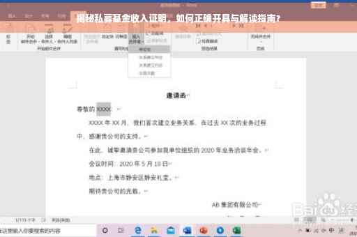 本文通过介绍私募基金收入证明的作用、如何正确开具、解读的关键点以及与投资者权益保障的关系,帮助投资者更好地了解私募基金收入证明问题,在投资基金过程中,投资者应关注自己的投资情况,保障自身权益,选择合规的基金管理平台,确保投资安全。