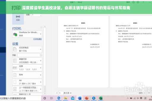 摘要:学生自愿注销学籍证明书的背后,反映了学生的离校决策。本文深度解读了如何撰写这份证明书,包括其重要性、必要内容和注意事项。注销学籍证明书不仅是一份文件,更是学生个人决策的体现,需要慎重考虑和认真撰写。本文旨在帮助学生了解离校决策背后的含义和如何正确表达这一决策。