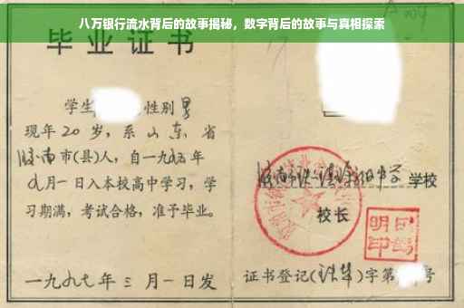 摘要:,,关于八万的银行流水背后的故事,其涵盖的内容广泛,可能涉及个人或企业的经济交易、金融活动等方面。至于具体的八万银行流水数额,无法确定其背后具体的故事情节,这可能涉及到个人收入、支出、转账等不同的金融交易情况。需要更多的背景信息才能准确理解这背后可能的故事。