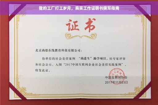 为了证明我在工厂的工作经历和成就,我提供一份工厂上班证明书,这份证明书详细记录了我任职的时间、职位、工作职责以及工作表现,通过它大家可以了解我工厂工作的经历和成长过程。