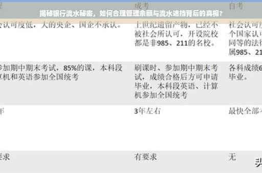 在当今社会,随着经济的发展和金融行业的繁荣,银行流水成为了人们生活中不可或缺的一部分,无论是办理贷款、信用卡,还是其他金融业务,银行流水都是评估个人信用状况的重要依据之一,在展示银行流水的过程中,很多人对于是否应该遮挡余额存在疑虑,本文将围绕这一问题展开讨论,并为大家揭示银行流水背后的秘密。