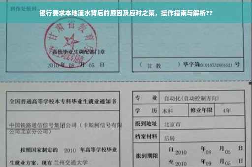 摘要:银行要求本地流水,主要是为了验证客户的资金流动状况和本地居住证明。这一要求可能源于贷款、信用卡申请等金融业务的审核流程。面对这一要求,客户应了解银行的具体规定,提供真实的银行流水记录,同时可通过优化个人资金管理和提前规划来确保满足银行要求。对于因特殊情况无法提供本地流水的客户,可咨询银行寻求解决方案。