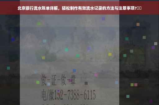 在现代社会,随着金融业务的不断发展,银行流水账单成为了个人经济生活中的重要证明文件之一,特别是在申请贷款、办理信用卡、参与某些商业活动等方面,一份良好的银行流水账单往往能为个人增色不少,北京银行作为知名的金融机构,其流水账单制作具有一定的特点和要求,本文将详细介绍北京银行流水账单的制作方法,帮助广大用户轻松有效地完成流水记录。